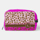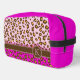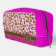 Monogrammed leopard animal pattern graphic pattern dopp kit bag with brown name band with your own monogram. Go wild with this light pink, hot pink and brown animal print. Customise with your own monogram letter currently K. © Pattern designed by Sarah Trett www.sarahtrett.com for www.mylittleeden.com on zazzle.
