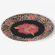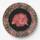 Leopard Animal Print and Pink Flowers on Black Paper Plate