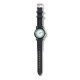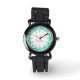 A unique leopard print style watch in aqua teal and grey hues. Customise with your name. This example reads Raelyn. Uniquely designed by Sarah Trett.