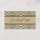 Show some classy style to your customers with this Leopard Animal Print Black Beige Custom Business Card. It is designed with the trendy beige light brown and black leopard print and a black horizontal stripe on the centre. Your business name is in black hand lettered script. The back of card has an easy to follow template to fill in your business information as follows: company name, address, city, state and zip code, phone number, email, business hours or customised text. CLICK PERSONALIZE TEMPLATE OPTION AND FOLLOW THE PROMPTS.