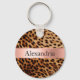 Leopard Animal Rose Pink Ribbon Name Key Ring