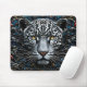 Striking and intricately designed centerpiece of a leopard's head, chraacterised by its distinctive spots and vivid amber eyes. Surrounding the leopard are lush, intertwining floral elements that include vibrant red flowers, adding a strong contrast to the predominantly dark background. The overall composition combines a sense of elegance and wild beauty, blending the animal's fierce expression with the delicate floral motifs. The detailed textures of both the leopard and the surrounding foliage create a rich, visually engaging piece that captures a harmonious blend of nature and artistry.