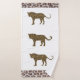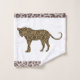 Majestic leopard on a white backdrop with leopard print border. Classic african wildlife theme .