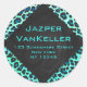 Leopard Black and Teal Print Classic Round Sticker