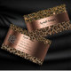 An elegant and feminine card with gradient colours in brown and black. A leopard pattern with golden sparkle, confetti. A faux bronze looking band on front. Template for your name and text on front. Black letters. The name is written with a modern and trendy hand lettered style script.