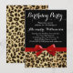 Leopard Bright Red Bow Girl's Birthday Party Invitation
