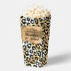 A wild leopard print pattern popcorn boxes features your thank you message on the front and back in chic lettering on gold faux foil. Fun for woman's birthday party favour boxes, bridal shower boxes, girls night out and more. MATCHING items in our collection.
