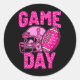 Leopard Game Day Pink American Football Tackle Bre Classic Round Sticker