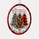 Personalised with name and established date Black and white Buffalo plaid, red and black gingham, leopard print Christmas Trees ornament.