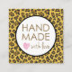 Personalised handmade with love business cards to add to your customer's orders. The front of the gift tag says Handmade with love in a gold glitter design and a little pink watercolor heart against a fun leopard pattern. The back has a place for you to personalise with your business logo, shop name, website and details you would like. A great addition to thank your customers with.