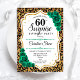 Surprise 60th Birthday Party Invitation. Feminine emerald green design with faux glitter gold. Features animal cheetah leopard print, roses, script font and confetti. Perfect for an elegant women's bday celebration. Can be personalized to show any age. Printed Zazzle invitations or instant download digital printable template.