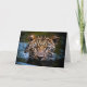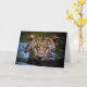 Greeting card shown with a photo print of a beautiful wild leopard in the water.
