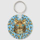Whimsical Leopard with Leopard Print Background Keychain! Customisable! Change the background colour!