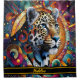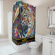 A captivating leopard design fills a Shower Curtain, blending vibrant colours and intricate patterns, perfect for adding a touch of wild elegance to bathroom décor while showcasing artistic flair.
