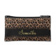 A stylish bag with a leopard animal print border in tan, brown and black. Text is displayed in gold coloured script.