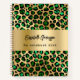 Leopard pattern emerald green gold name notebook
