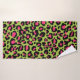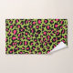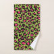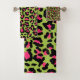 Leopard Pattern in Raspberry on Lime Green Bath Towel Set