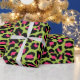 Leopard Pattern in Raspberry on Lime Green Wrapping Paper