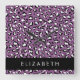 Leopard Pattern, Spots, Purple Leopard, Your Name Square Wall Clock