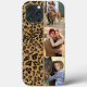 Leopard print phone case personalised with 3 of your photos. The photo template is set up to display your pictures in vertical portrait format. Designed for the iPhone 13 Pro Max but will fit many other models. If you choose a different model check the design still looks great in the preview and tweak if necessary (click "customise further" or message me for assistance).