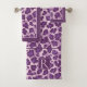 Leopard print and monogram Bath Towel Set in purple tones. This trendy design showcases a leopard animal print with purple borders and monogram.