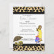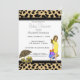 This design features an adorable Mummy-to-be wearing a lemon yellow dress with leopard print accents and leopard print shoes. She is carrying colourful shopping bag and sporting a cute baby bump. There is a pile of colour coordinated gifts, along with a leopard print umbrella waiting for her in the corner. We have plenty of customisable text for you to add your party information. Leopard print framing along the top and bottom of this trendy baby shower invitation completes the look of this great girly pattern. The reverse side of this invitation has the same leopard pattern. We have matching stamps available too! If you need this design on other products please use the send message feature attached to this store and we will be happy to create that product for you.