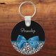 Leopard Print Animal Pattern Pretty Blue Bow Key Ring