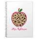 A spiral notebook for teachers featuring an illustration of a leopard print apple. Personalise with your name.