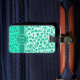 Bright animal print initial monogram luggage tag in aqua mint and green. Customise with your address and initial of your choice. Example reads D on front and customise the reverse of this tag with your name and address details. Smart, stylish and unique great for business trips and holidays. Designed by Sarah Trett.