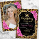 Elegant feminine 50th birthday invitation with your photo at the back of the card. Glam black design with animal leopard print and faux glitter gold. Features pink roses, script font and confetti. Perfect for a stylish adult bday celebration party. Personalise with your own details. Can be customised for any age! Printed Zazzle invitations or instant download digital printable template.