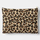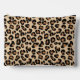 Pouch in a leopard animal print in black and rust brown spots on a tan background