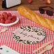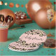 Baby shower paper plates in blush pink, with a smattering of leopard spots in brown and gold.