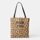 This design features a Brown Leopard Print pattern on both sides and would blend in with any shopping outfit. The text on both sides can be changed to suit your own requirements.