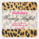 leopard print Candy Buffet Sticker. Great for Candy buffets or cupcake tables at weddings, birthday parties, Baby showers, Communion, Confirmations and lots more! Design features background leopard print in black and gold. Wording, text colour and style can be changed in the 'Customise' Menu. perfect for animal or safari themed parties