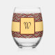 A trendy chevron pattern features rich burgundy red and bright white layers sandwiching layers of fashionable leopard print. A deep brown line separates the chevron columns for a classy final touch. Customise the monogram with your initial to make this drinkware uniquely your own. This glassware is also available in rocks and can glass styles.