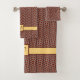 A trendy chevron pattern features rich burgundy red and bright white layers sandwiching layers of fashionable leopard print. A deep brown line separates the chevron columns for a classy final touch. Customise the monogram on the hand and bath towel for a unique decoration for your bathroom. These items can be bought as a matching set or as individual pieces.