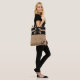 Stylish brown and tan leopard print carry all tote bag, with two big bold black stripes, across the top and graphics of a coordinating bow. Personalise the black script text, on the bottom of the bag, to read what you want. What a great gift idea for her.