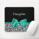 Leopard Print Emerald Green Ribbon Bow Chic Name Mouse Pad