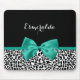 Personalise by adding the name of any girly girl to this trendy black and white leopard print mousepad with a girly emerald green ribbon tied into a cute bow. This stylish animal print design is a flat printed image, and does not contain actual ribbon.