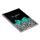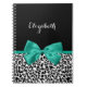 Personalise by adding the name of any girly girl to this trendy black and white leopard print notebook with a girly emerald green ribbon tied into a cute bow. This stylish animal print design is a flat printed image, and does not contain actual ribbon.