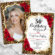 Elegant feminine 50th birthday invitation with your photo at the back of the card. Glam design with animal leopard print and faux glitter gold. Features red roses, script font and confetti. Perfect for a stylish adult bday celebration party. Personalise with your own details. Can be customised for any age! Printed Zazzle invitations or instant download digital printable template.