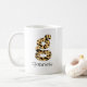 Personalise this custom leopard print lowercase letter "g" coffee mug by adding a name. The custom name is in a girly handwritten type font.