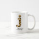 Personalise this custom leopard print lowercase letter "j" coffee mug by adding a name. The custom name is in a girly handwritten type font.