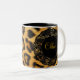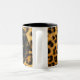 Chic animal print mug features leopard print topped with a lacey doily personalised with your name.