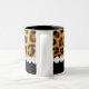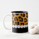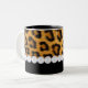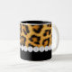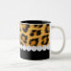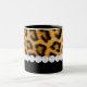 Chic coffee mug features leopard print topped with a row of ivory pearls.
