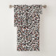 Chic Blush and Black Leopard Print Pattern on White Bath Towel Set.