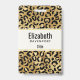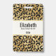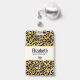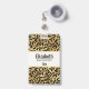 Personalised name badge with a stylish pattern. Exotic black leopard spots on a gold background. Wild yet elegant style.