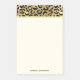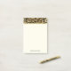 Sticky notes with a stylish pattern. The top border is designed with an exotic black leopard spots on a gold background. Wild yet elegant style. A thin faux gold foil stripe below the pattern. Writing space is a soft cream colour. Personalise with a name.