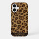 Bold leopard print phone case with sleek black name panel. Add your name—or go classic. Timeless style + fierce protection.