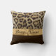 Leopard Print Pillows Decorative with YOUR NAME typed on the golden ribbon like band. The back is a full leopard print and the front has the Leopard Print, Golden Band with Your NAME and brown accent on the bottom. You can also DELETE the Text altogether by Highlighting "Your Name" and Deleting it.